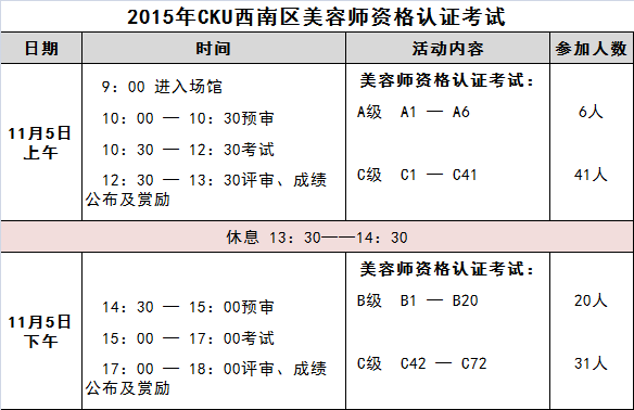 注: 1.以上时间为预计时间,根据考试现场流程进度会有略微变化,请考试的考生提前到场关注现场时间。 2.参加考试的考生,请于11月4日下午13:00—17:30凭有效证件至商场领取资料。 现场联系方式:张宇 15910913934