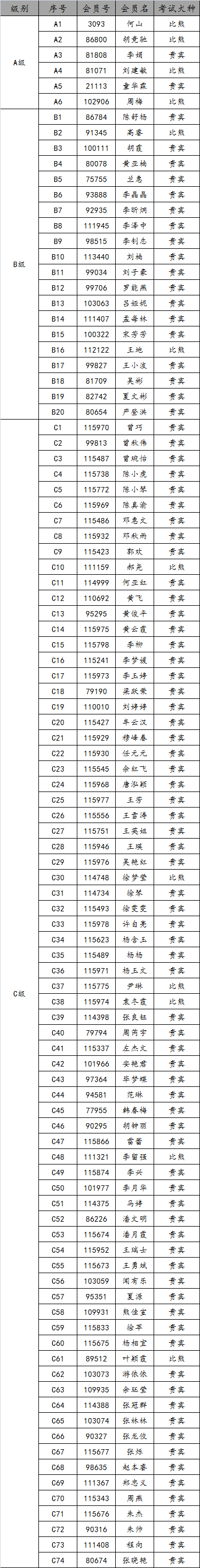 考试名单如下:
