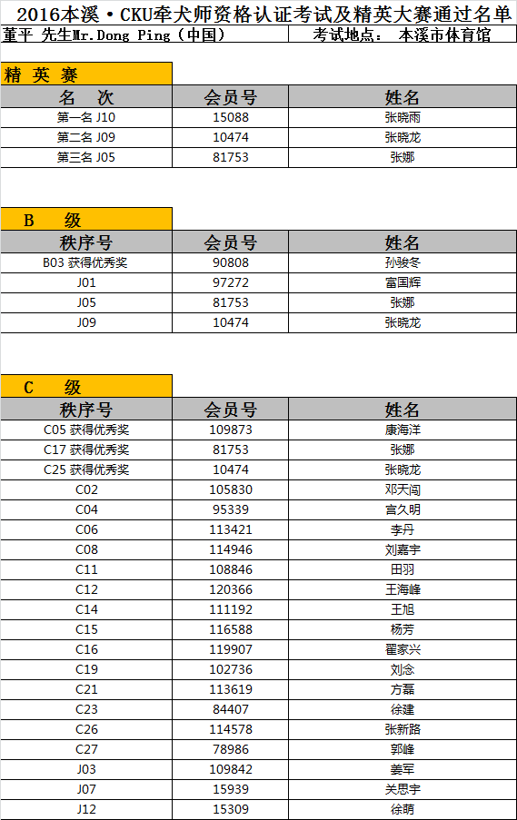 2016本溪·CKU牵犬师资格认证考试及精英大赛通过名单