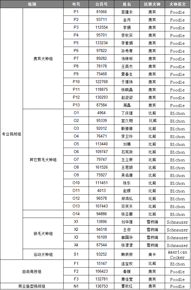 参赛名单: