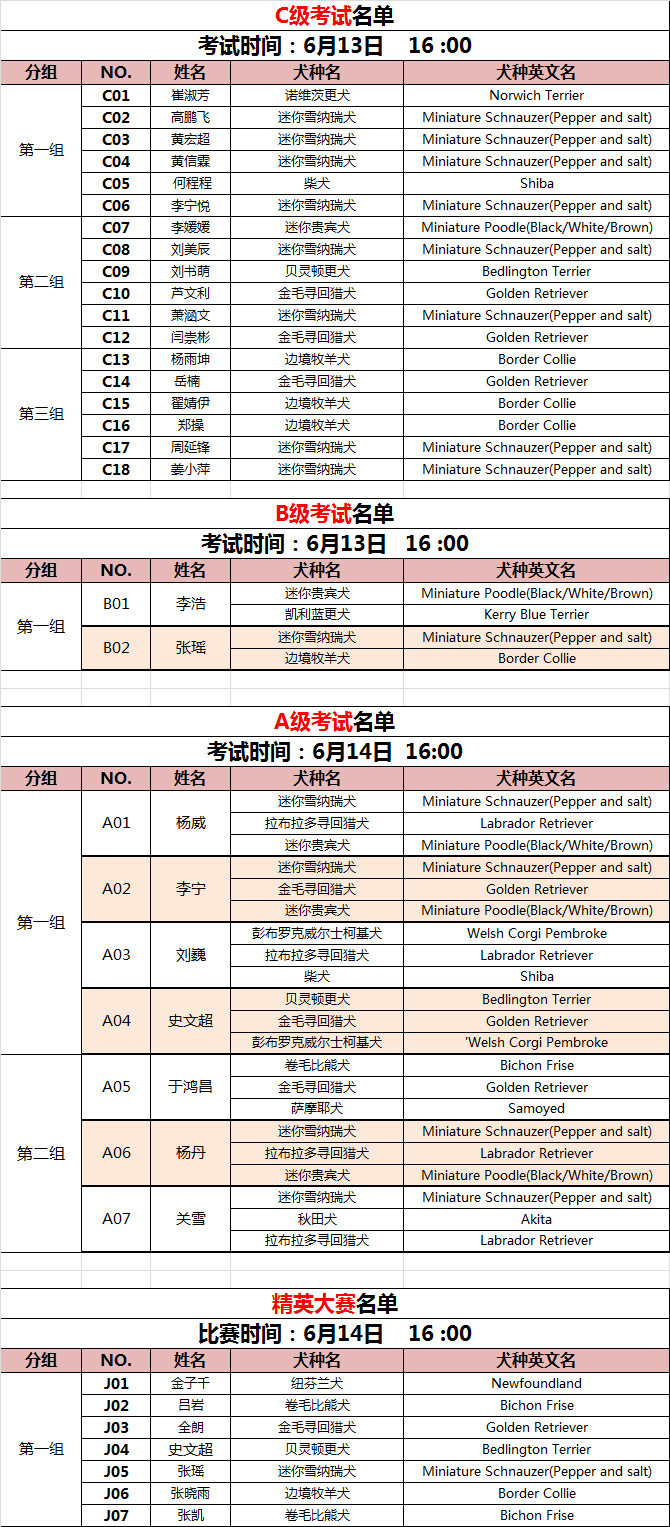 1.考生请于考试前,凭CKU会员卡及有效身份证件领取考试用号码袖标。 2.考生需穿着正装参加考试,号码袖标佩戴于左臂。 3.考生需自备考试所用犬只,报名截止后不可更改犬种。 4.考试期间考生不可与审查员及其助理攀谈交涉。 5.考生须无条件服从审查员审查结果。 现场联系方式:王婷:13601175621