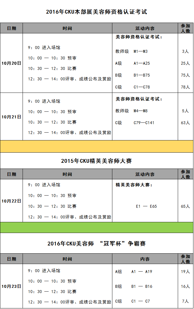 2016年CKU本部展美容师资格认证考试、精英赛、冠军杯时间安排(10月廊坊)