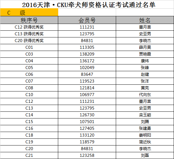 2016天津·CKU牵犬师资格认证考试通过名单